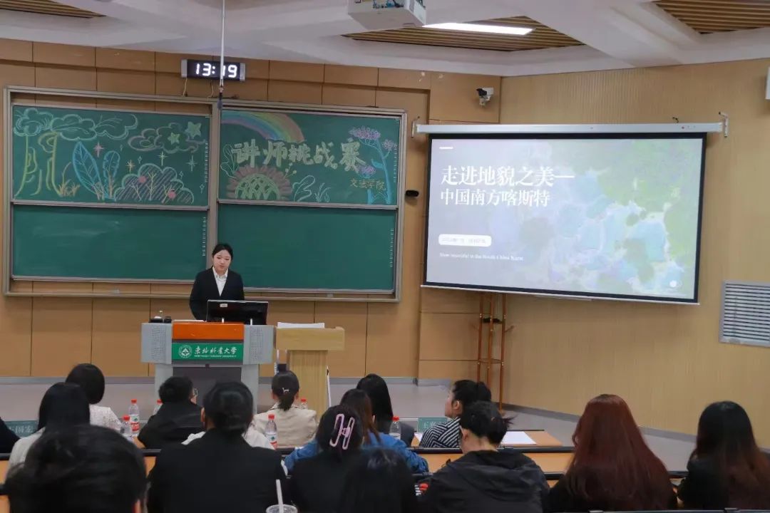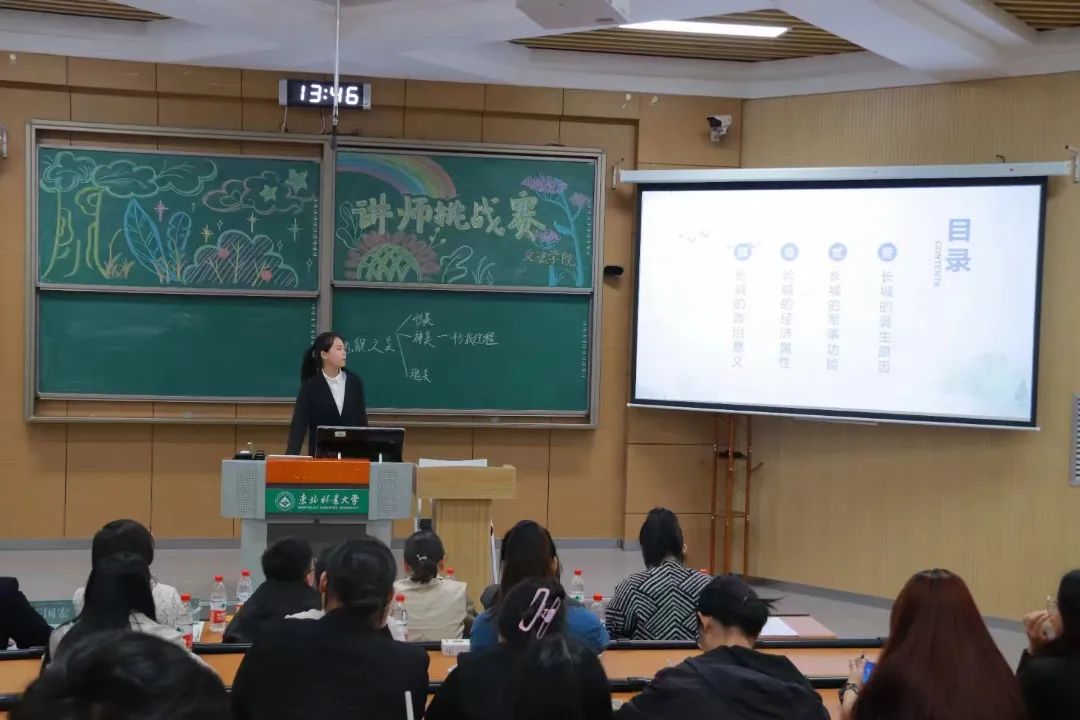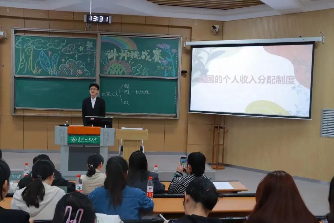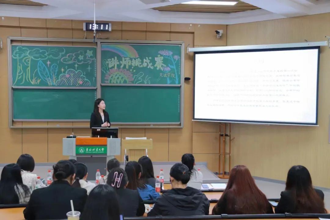 田钰洁同学以“礼仪文化”为主题,借助经典案例向我们展示了礼仪的重要性;刘佳怡同学以“走进地貌之美”为主题,借助丰富多彩的图片为我们展示了喀斯特地貌的形成原因和独特风貌;周天艺同学以“我国的个人收入分配制度”为主题,将知识讲授与随堂练习相结合,带领我们更准确深入地了解个人收入分配制度;孙颖同学以“长城——伟大的墙”为主题,分门别类、清晰明了地向我们介绍了长城的各种功能;刘婷婷同学以“广播剧鉴赏”为主题,利用文字、音频等多种形式为我们带来了流畅的讲解和生动有趣的课堂互动;武颖同学以“苏轼和他的人生哲学”为主题,以苏轼在各个时期所作的诗词为线索展开了对苏轼人生哲学的讲解;谭华同学以“安史之乱后的大唐”为主题,用严密的逻辑串联起一个个历史事件,为我们讲解了大唐在安史之乱后日渐衰弱的局面。选手们各展风采,以生动的表达、缜密的逻辑、深入浅出的讲解技巧为我们带来了一场精彩绝伦的视听盛宴,充分展示了文法学子丰厚的文化底蕴和出色的语言表达能力,为我们带来了知识上的享受和心灵上的震撼。