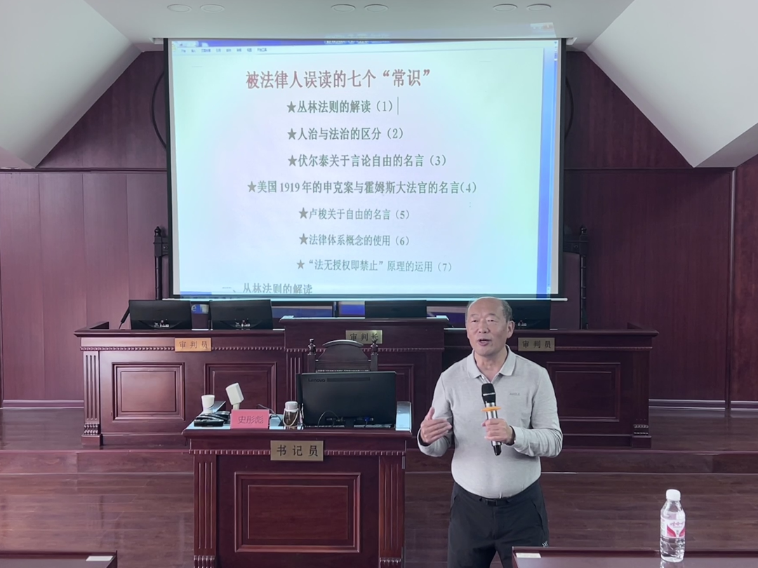 史彤彪教授主要围绕丛林法则的解读、人治与法治的区分、伏尔泰关于言论自由的名言、美国1919年的申克案与霍姆斯大法官的名言、卢梭关于自由的名言、法律体系概念的使用、“法无授权即禁止”原理的运用等七个方面展开论述,并指出了法律人对该七个常识的一些误解。史教授认为,法学研究需要严谨的态度和开阔的眼光,法律问题不能片面的去理解,更不能轻易盲从,而是要理论结合实践全面进行思考。史教授还强调当今社会,法律人必须要善良要有温情,法律的价值在于抑制强者,辅助弱者。