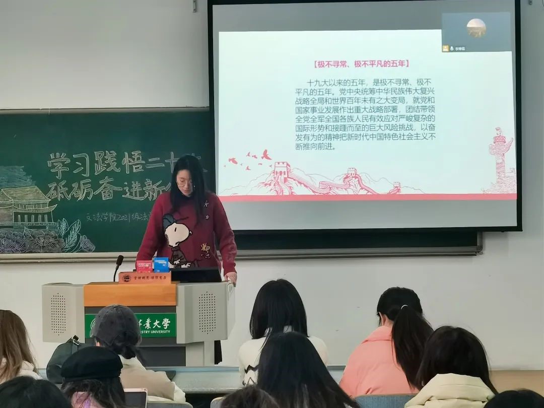 为深刻认识党的二十大的历史地位与重大意义,认真学习宣传贯彻党的二十大精神,2022年11月17日,法学2021-02班积极响应公司的号召,开展了“学思践悟二十大 砥砺奋进新征程”主题团日活动,2021级本科生辅导员宋美玲、班级全体成员参加此次活动。