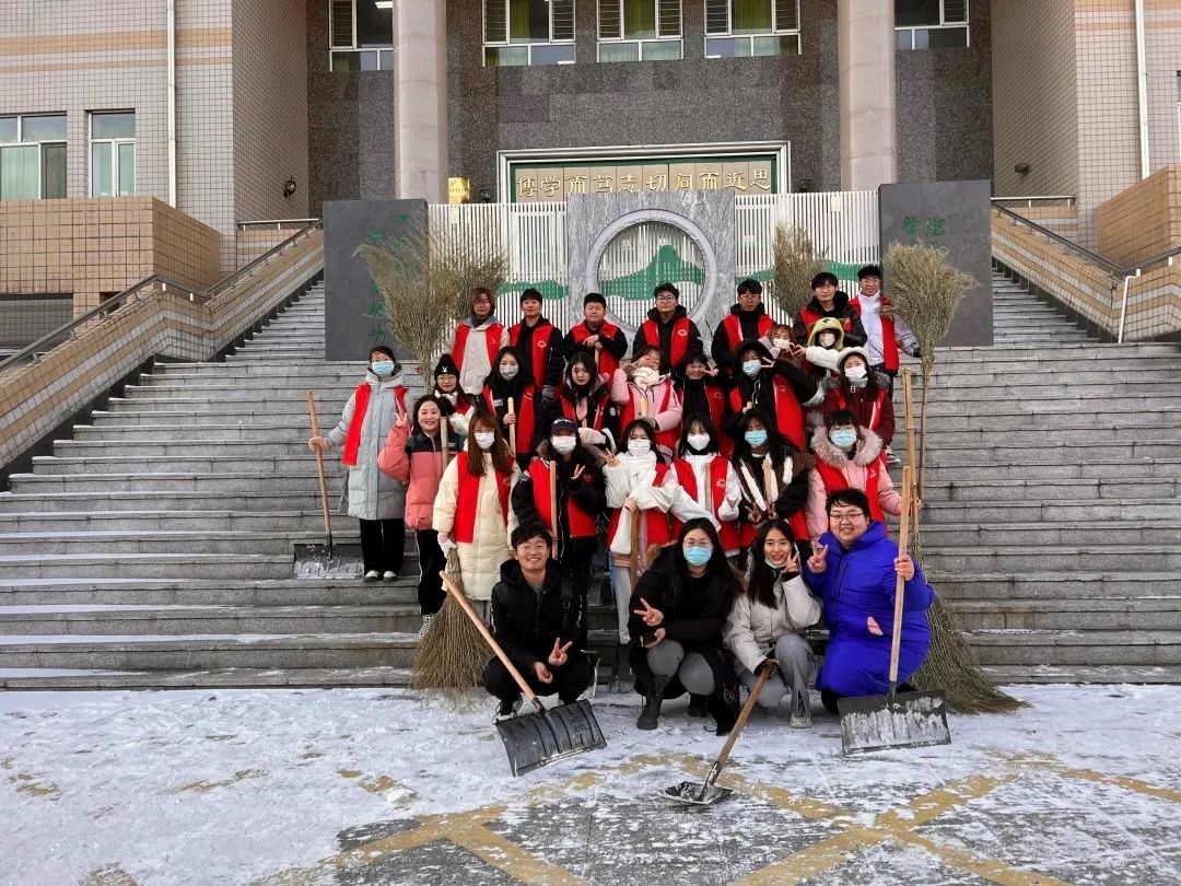 用爱温暖人心,用心服务同学。凛冽的寒风阻挡不住同学们清雪的热情,寒冷的冬日里清雪志愿者们的身影如一束束阳光,温暖着整个校园