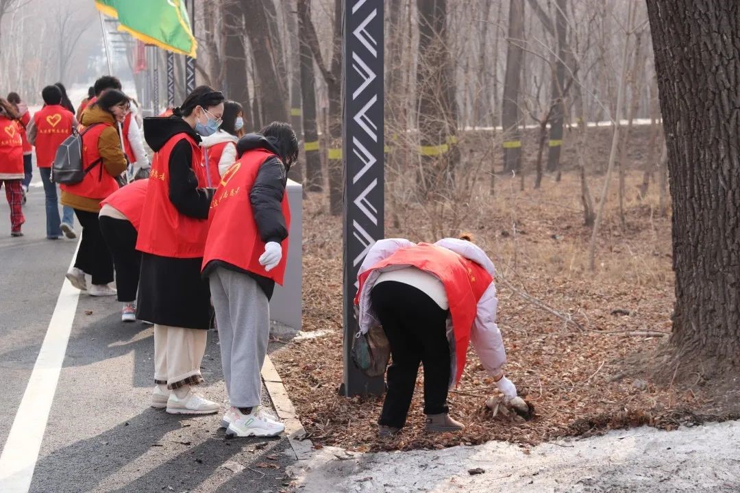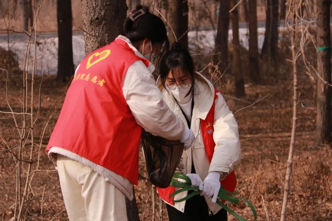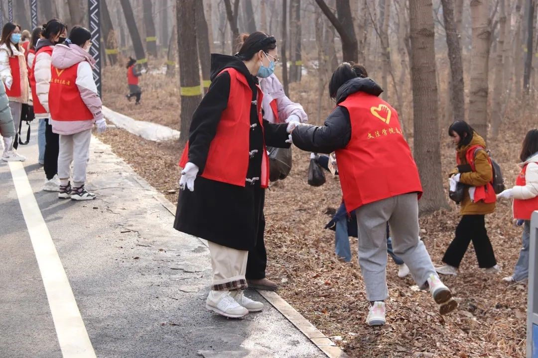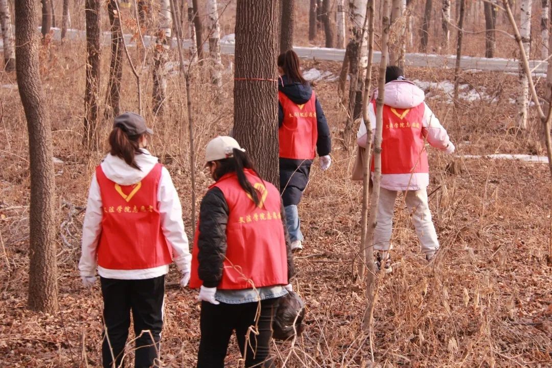 随着负责人宣布活动开始,同学们陆陆续续进入了林场。春寒料峭,但无法打消志愿者们的热情,他们认真细致地检查着林场的每一处,不放过任何一个可能藏有垃圾的角落。志愿者们在活动中充分发扬团结协作精神,各司其职、通力合作。严冬的雪初融,垃圾混着泥泞掩藏在草丛中,志愿者们不怕辛苦不怕脏,耐心地将垃圾从地上挖出、捡起,放进垃圾袋。经过志愿者们的认真清理,林场焕然一新。黑黢黢的泥土里埋藏着的生命之绿正等待着破土的机遇,阳光倾泻在志愿者们的红马甲上,反射出青春的光辉。