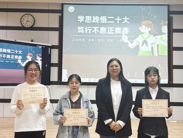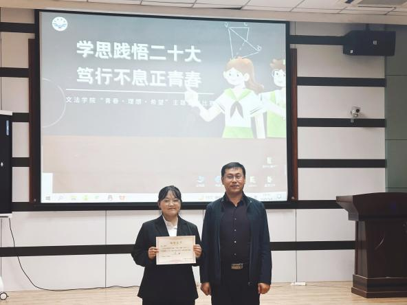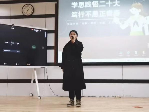 比赛之初,李馨同学宣读参赛选手名单以及演讲比赛要求,员工按抽签顺序依次进行演讲。舞台上,选手们以自信昂扬的姿态,配合着精心制作的多媒体课件,将他们的风格发挥得淋漓尽致,每位参赛选手都精神饱满、感情充沛、表达流畅,他们富有感染力地讲打动了评委老师和在场观众,将现场气氛推向一个又一个高潮,充分展现了文法学子良好的精神风貌和积极向上的生活态度,并表达了对党的二十大精神的深刻理解和对于未来的美好憧憬。