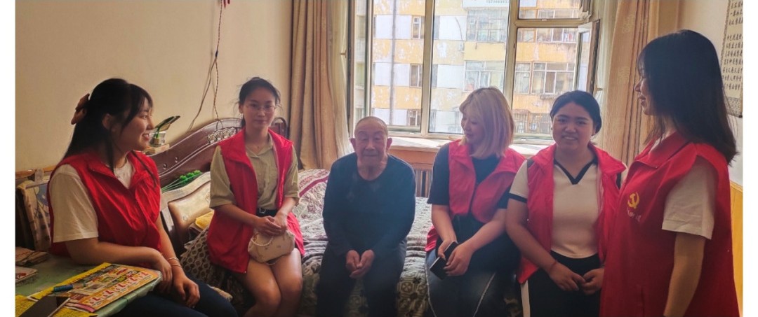 老人和蔼地将志愿者们让进屋内,并亲切地为志愿者们分发早已准备好的糖果。接着志愿者们和老人十分自然地聊着家常,从身体健康状况到喜欢的娱乐活动、从家人到故乡、从国家政策到城市发展……在热情洋溢的聊天中老人时常被志愿者逗得开怀大笑。