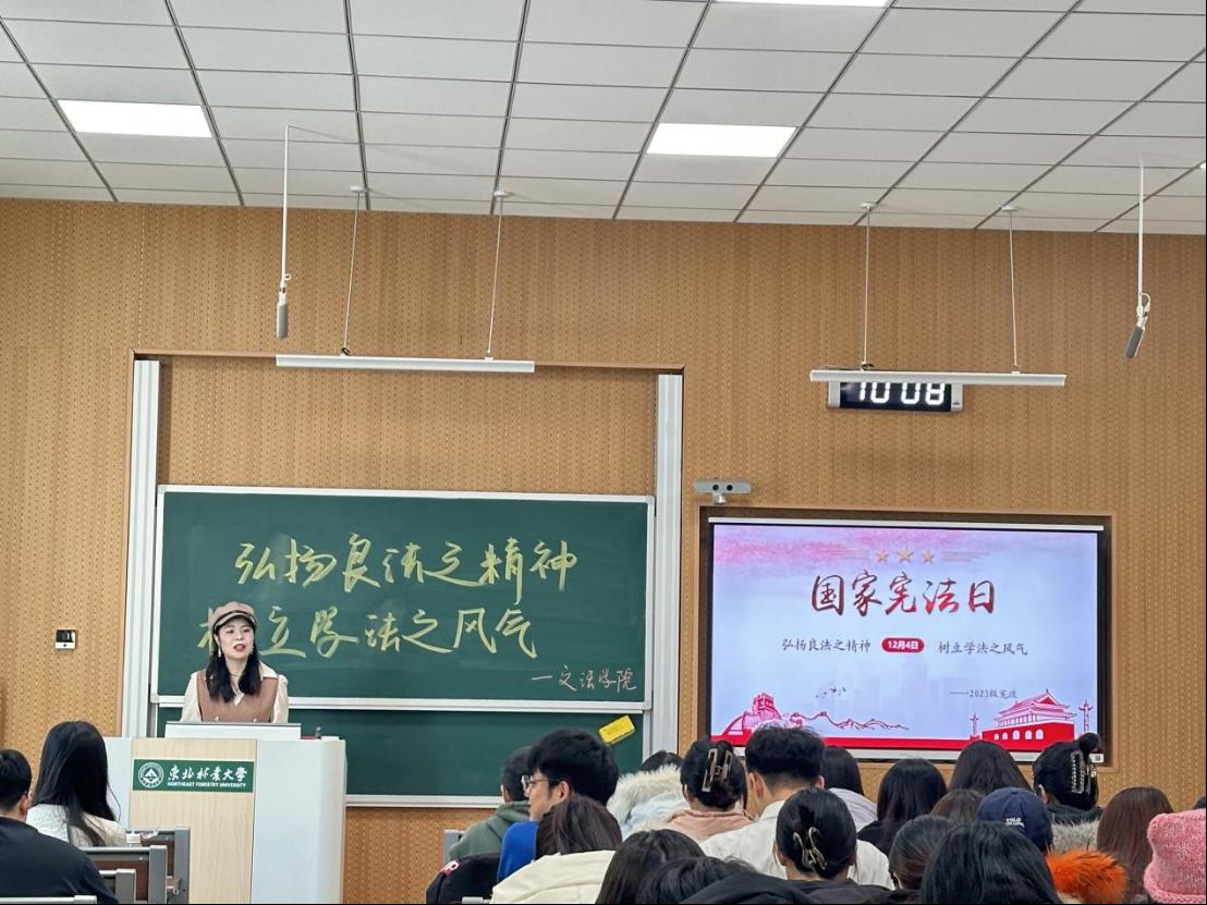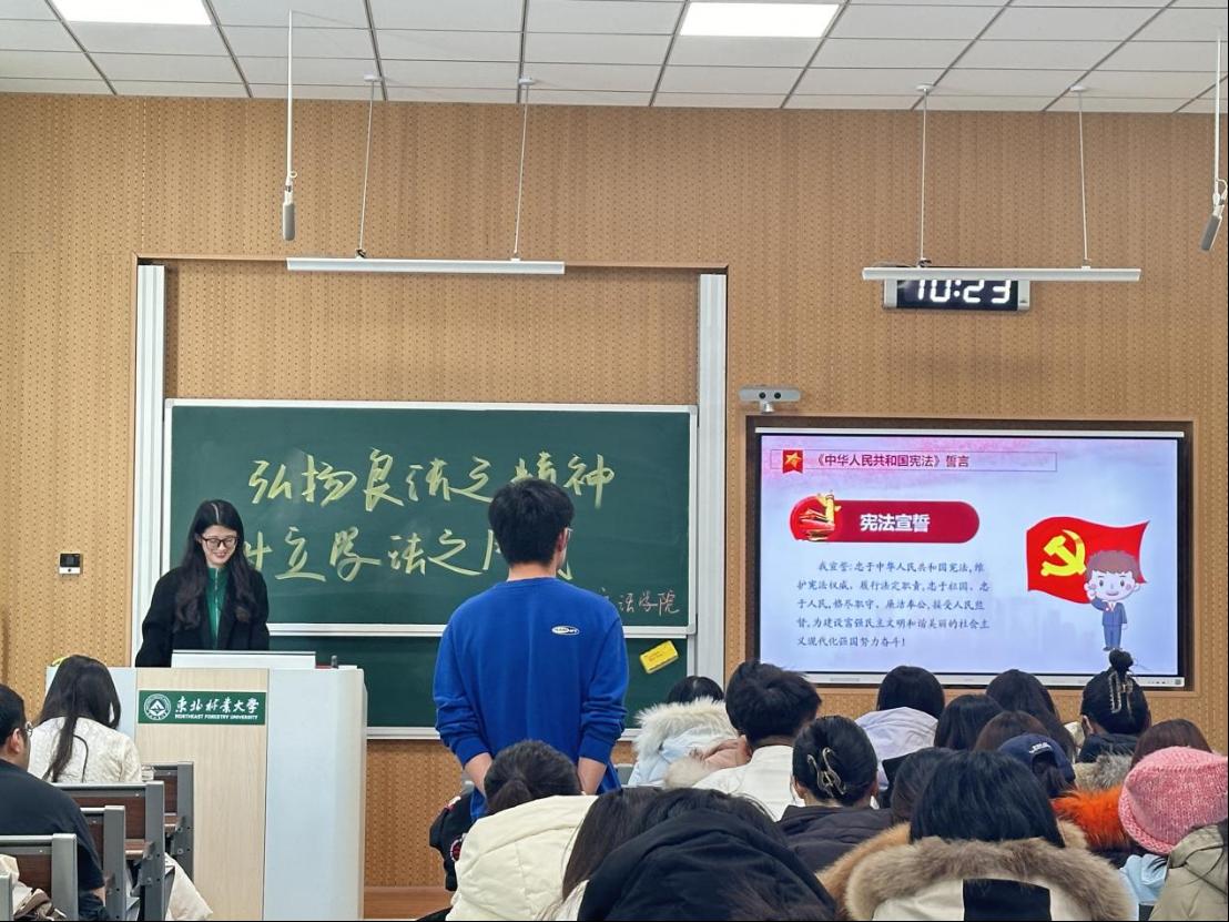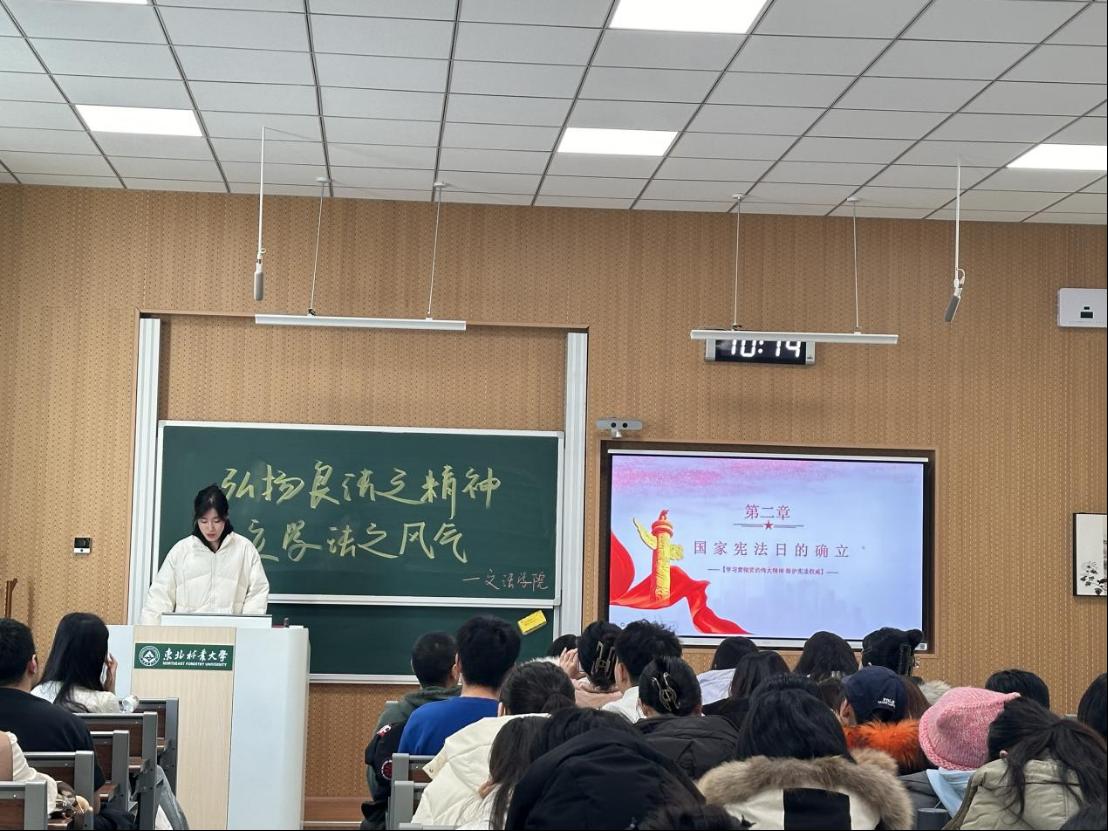 为深入学习贯彻习近平法治思想,大力弘扬宪法精神,增强青年员工宪法意志和宪法素养,伟德国际1946团委于12月6日10点在丹青楼410组织开展“弘扬良法之精神,树立学法之风气”主题团日活动。本次活动由吕佳倚同学、杨倩同学、刘一帆同学共同主持,2023级全体研究生参与。