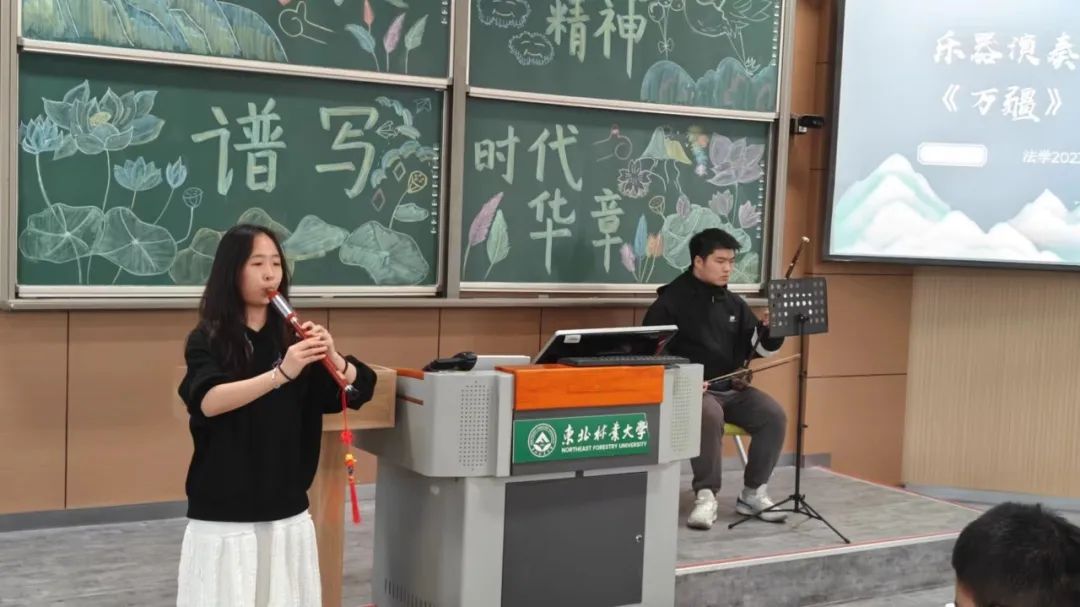 二胡和巴乌的完美交融演奏出和谐而宏大的乐章。气势恢宏的音乐让我们仿佛置身于美丽的祖国山河中去,更让我们惊叹于美丽中国的大好河山,不禁想为祖国的生态文明建设贡献东林学子的力量。