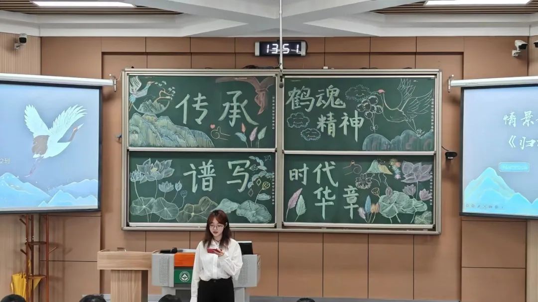 以文载曲,以文颂曲。《绿色华章 鹤魂颂》通过文曲交融的形式,赞美鹤魂精神的伟大,也传递出我们对动物保护事业的热爱与关注。抑扬顿挫的朗朗之声,展现了新时代东林学子传承鹤魂精神的信心与决心。