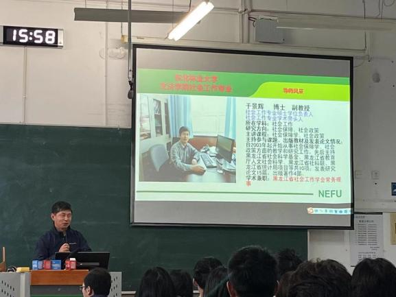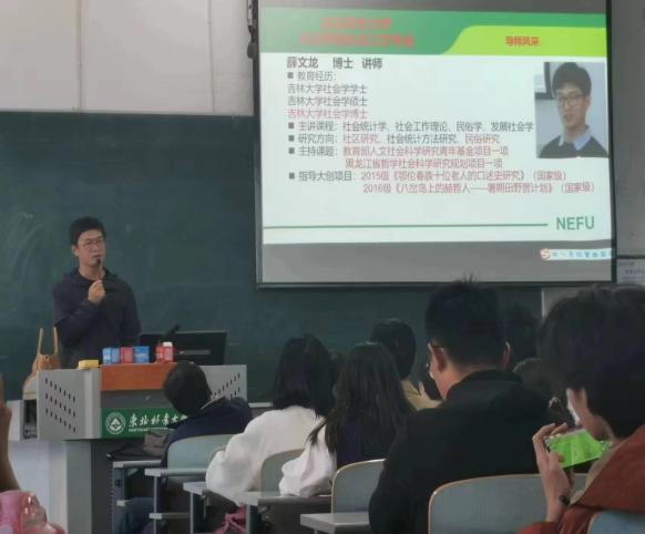 而后,全体社会工作专业教师依次走上讲台向新生们进行自我介绍。教师们一方面分享了个人所从事的研究方向,另一方面详细阐述了各自所开设的课程内容。与此同时,还对新生们即将开始的大学四年学习生活表达了殷切的期望和美好的祝愿。
