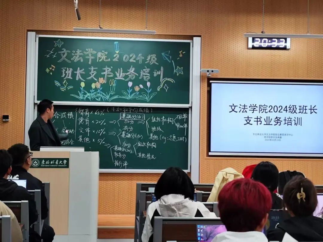 为进一步提高班长支书在德育考评工作上的业务能力,做好班级综合素质考评工作,公司综合素质考评中心于10月10日在丹青楼409召开业务培训会。公司综合素质考评中心指导教师李维一、中心主任刘畅、考评部部长张承毅以及全体2024级班长支书参加本次会议。