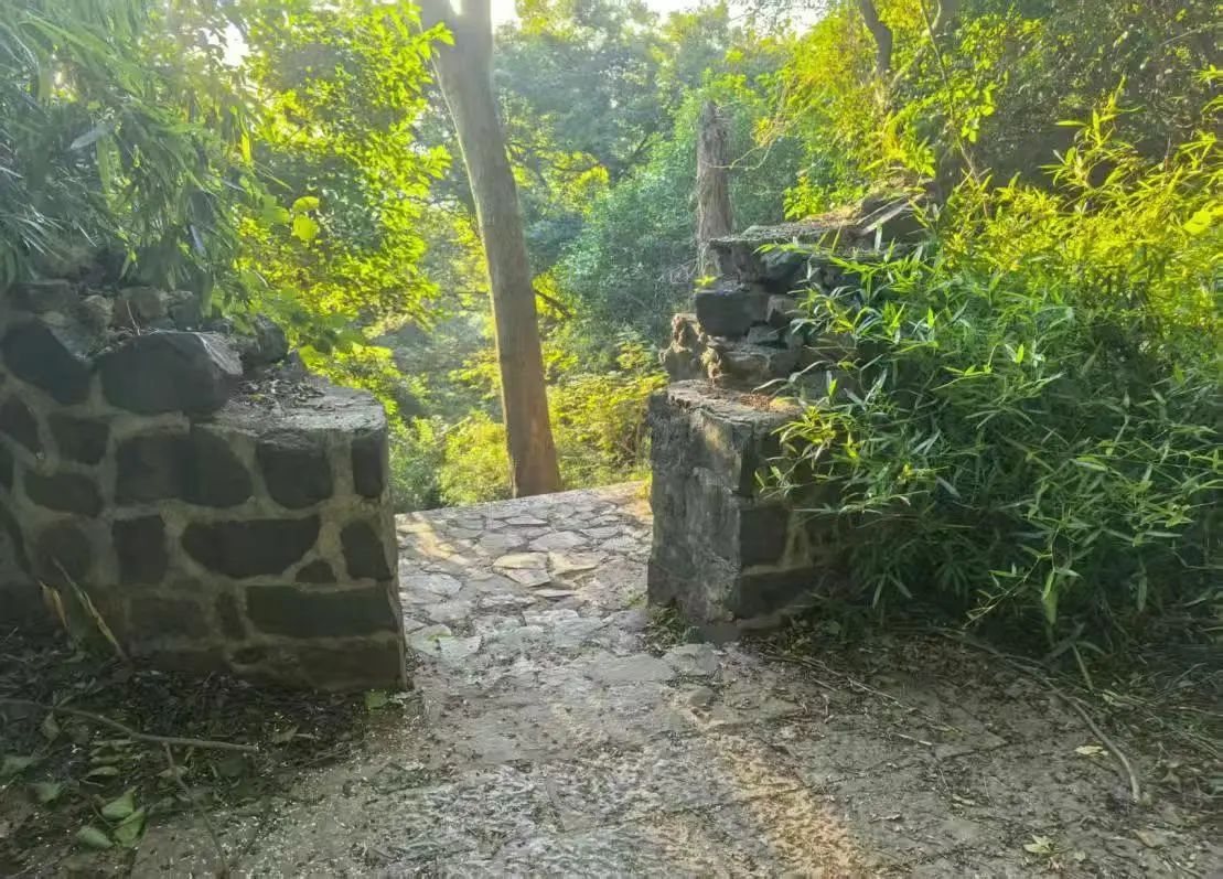 大蜀山的山中与山顶是红色历史的缩影,承载着革命先烈们不屈不挠的斗争精神。队员们在攀登过程中,经过了一处保存较为完好的碉堡遗址,这座坚固的碉堡曾是革命队伍用来防御敌人进攻的重要阵地。岁月的痕迹依然深刻在石墙上,仿佛诉说着当年在此激烈战斗的历史。在这里,革命先烈们顶着枪林弹雨,顽强地保卫着这片大地。