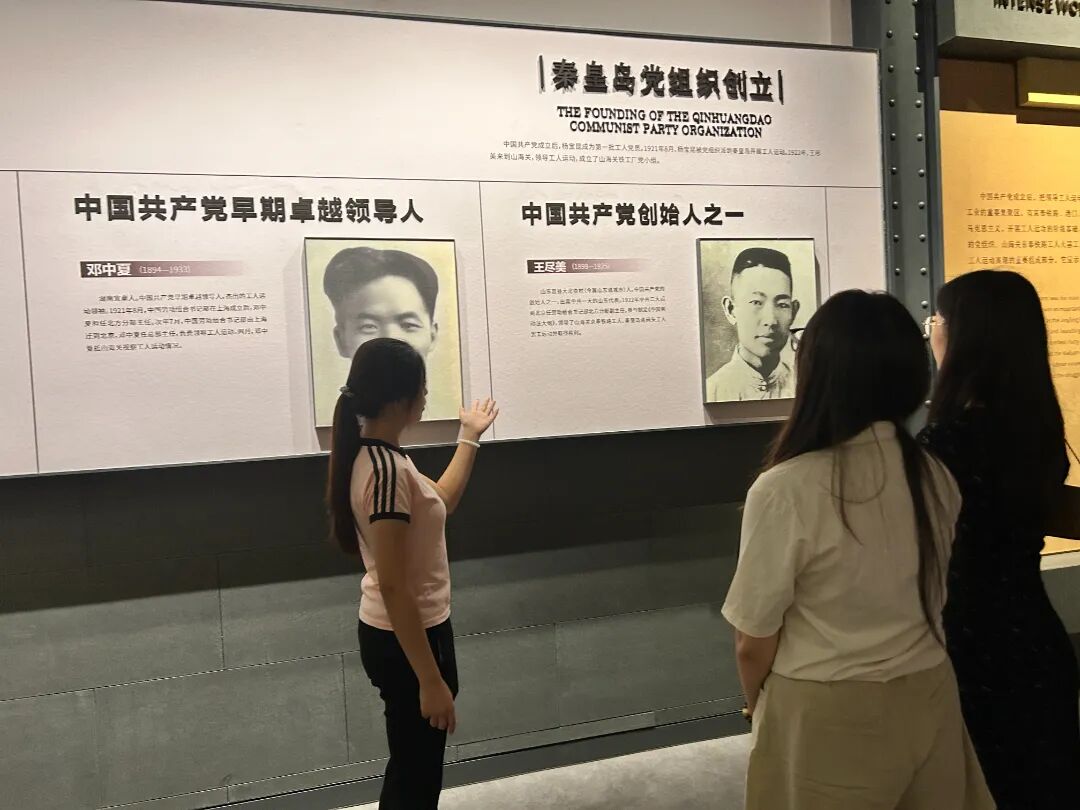 在“秦皇岛党组织创立”展区,团队重点学习了邓中夏、王尽美与本地革命的渊源。成员们一边介绍,一边对比两位先驱的实践:邓中夏侧重组织工人斗争,王尽美专注培育党组织力量,两人的努力让秦皇岛成为北方革命的重要支点。秦皇岛的党组织从诞生起,就刻着“敢斗争、能团结”的基因。