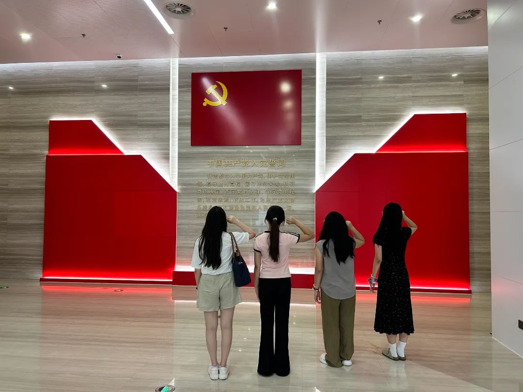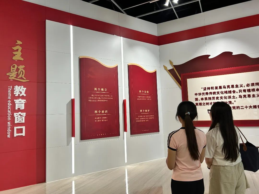 在秦皇岛博物馆的“主题教育窗口”,团队指导老师曲思雨、傅长裕带领大家逐字学习党的二十大报告中“弘扬伟大建党精神”“用好红色资源”等相关论述,并结合先前了解的李大钊前辈的革命经历,讨论“新时代青年如何传承红色基因”。学习结束后,全体党员成员面向鲜红的党旗,举起右拳,重温入党誓词:“我志愿加入中国共产党,拥护党的纲领,遵守党的章程……”铿锵的誓言与展厅内的标语交相辉映。