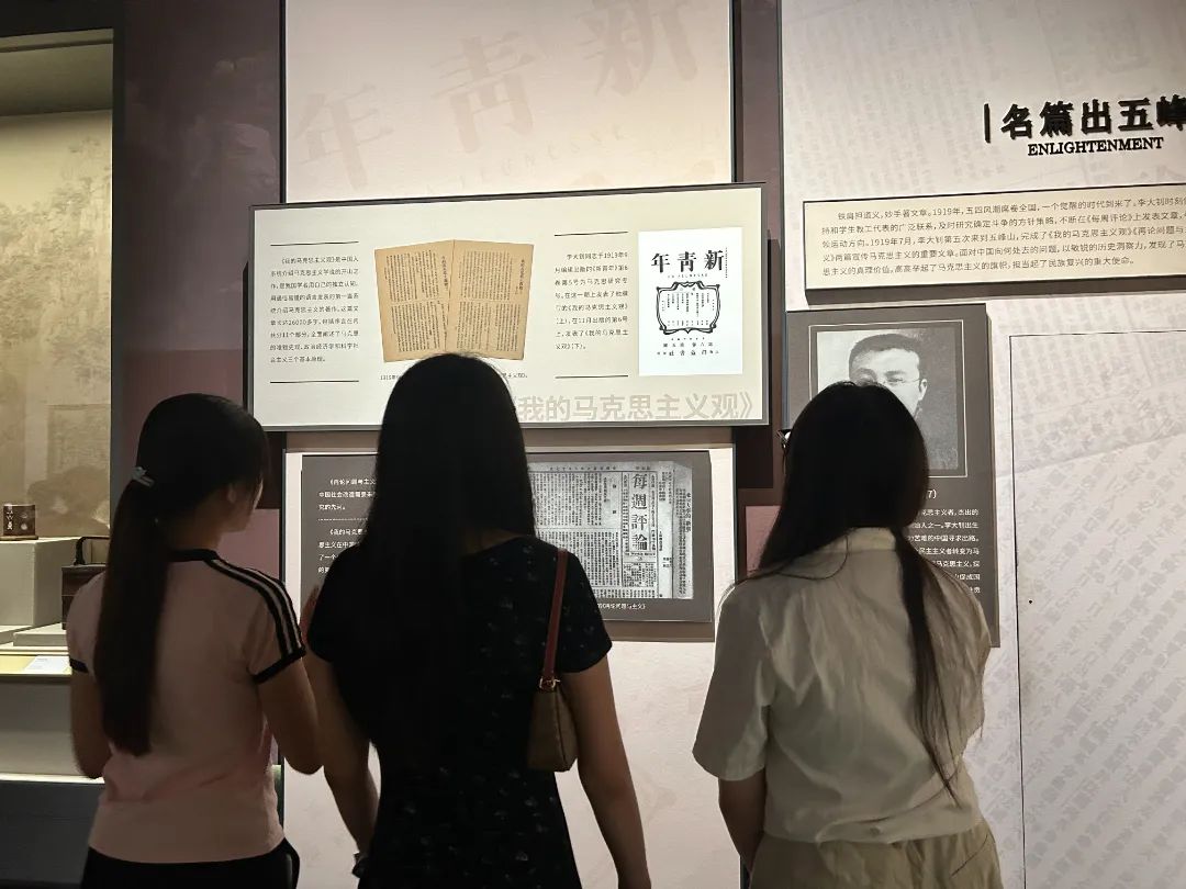 上午9时,秦关红迹寻访队走进“笔耕五峰,星火之源”专题展区,围站在李大钊先生的手稿复刻件前,聚焦前辈在秦皇岛的革命实践,展开了一场特殊的“红色交流会”。1922年,李大钊曾在秦皇岛秘密开展革命活动,指导当地工人运动和党组织的建立,展区内《再论问题与主义》《我的马克思主义观》,正是他传播革命思想的见证。从“南陈北李,相约建党”的佳话,到他在绞刑架前“不能因为你们今天绞死了我,就绞死了伟大的共产主义”的呐喊,一个个细节让这位“播火者”的形象愈发清晰。