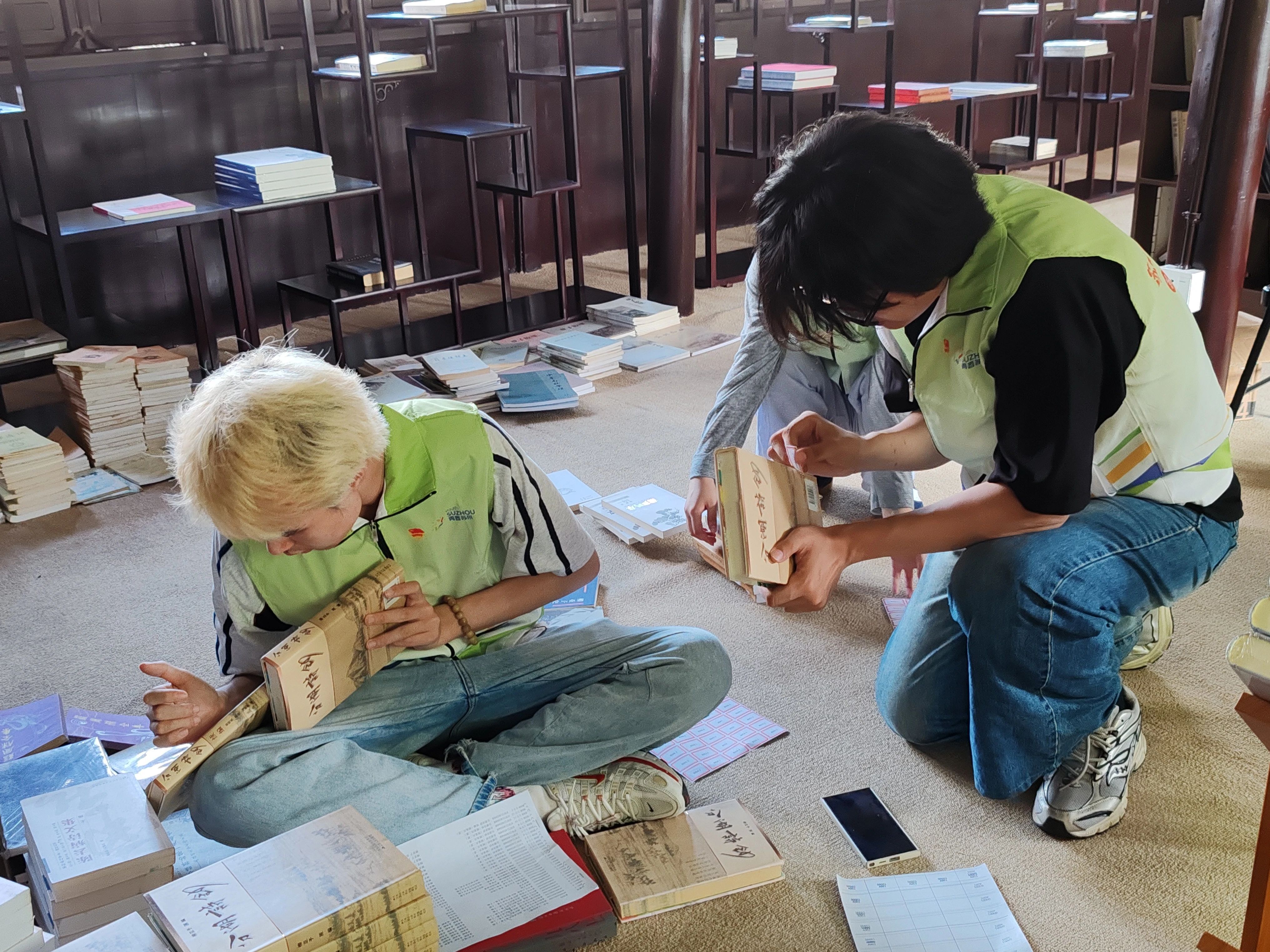在柳亚子纪念馆的陈列架间,队员们将散落在时光里的史籍轻轻归位。那些记录着烽火岁月的文献,像等待唤醒的历史信使,经队员们的手重新列队,静候与驻足者开启一场跨越百年的无声对谈。