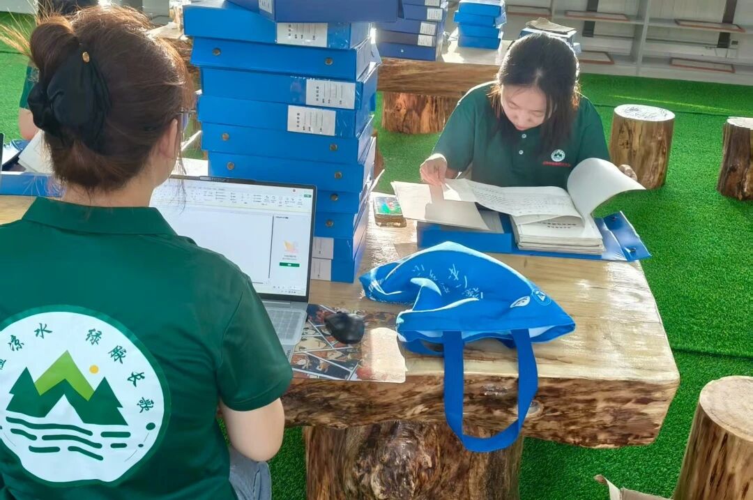 在参观完凉水实验林场标本馆之后,队员们便开展整理档案的工作。在整理档案的过程中,队长将此工作细化成三个环节,两两一组,分工明确,各司其职。第一组负责对收集到的文献资料进行初步筛选,将重复、无效的信息剔除;紧接着,第二组则专注于核对历史数据,确保每一份记录的真实性和准确性;最后,队长承担文字整理的工作,将庞杂的内容梳理成条理清晰的文档。