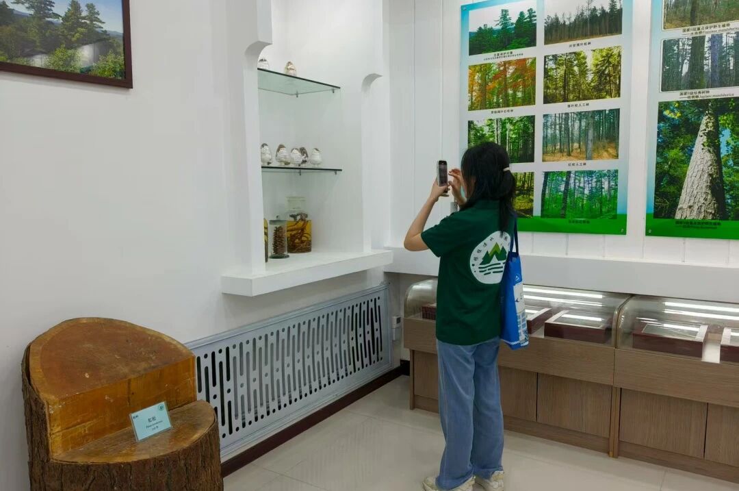 队员们在老师的带领下,参观了标本馆的植物标本与动物标本。在馆内,队员们仔细观察着各类标本。通过老师的介绍,大家了解到每一份标本背后都凝聚着科研人员的心血与汗水。这些标本不仅记录了小兴安岭地区生物多样性的发展历程,更见证了东林人几十年来在生态保护领域的不懈努力。队员们认真记录下的每一个细节,也为后续的场史编撰工作积累了宝贵的资料。