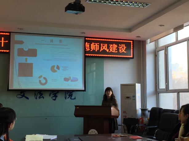会议首先由法学教工第一党支部的邹丽梅老师做题为《高校廉政文化建设》的主题讲座,发言从高校廉政建设的背景、高校廉政文化的界定、高校廉政文化建设的指标体系以及完善高校廉政文化建设的对策四个方面展开,运用田园调研和实证分析的方法,为与会老师生动、全面的介绍了高校廉政建设不容乐观的紧迫形势。随后,法学教工第二党支部的赵权老师做了题为《不忘初心,坚守岗位,扎实推进师德师风建设》的主题发言,赵权老师认为所谓的师德师风 ,就是做好本职工作,立足员工发展,不搞形象工程,不搞花架子,不搞形式主义,直击问题和痛点,提升员工培养质量,助力员工发展。他从立足本职岗位,做好授业解惑工作;潜移默化间培养员工的理想信念,做人做事的道理;助力员工就业,提升培养质量;关心爱护员工,一身多责,解决问题等角度阐明了自己的观点。