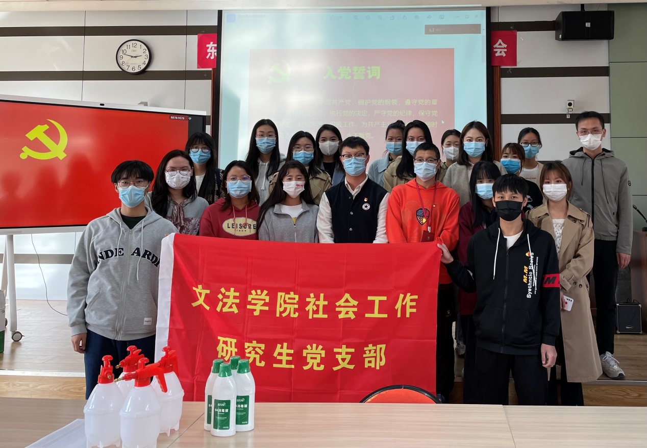 为庆祝新中国成立72周年,深入学习贯彻习近平总书记在庆祝中国共产党成立100周年大会上的重要讲话精神,扎实推动党史学习教育,持续推进“我为群众办实事”主题实践活动走深走实,10月3日下午,社会工作研究生党支部在文法楼105室召开了“小支部有担当”主题党日活动暨支部党员大会。根据疫情防控要求,支部19名正式党员以线下线上相结合的方式出席会议,20余名入党积极分子列席会议并参加活动。会议由支部书记吴宇昊同志主持。