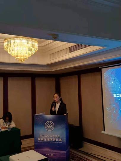 经过紧张激烈地复赛比拼,陈迪同学凭借其动人的故事和出色的讲演,成功闯入决赛。决赛环节的比赛方式是即兴演讲与互动,陈迪同学沉着冷静,为大家更深入地讲述了她与“一带一路”的故事,获得了评委老师的一致好评,并最终取得了大赛一等奖的优异成绩。本次比赛的指导教师程铭老师也获得了优秀指导教师奖。
