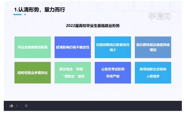 李红围绕就业压力评估、就业压力管理、调整就业心态三个方面的内容为同学们做了讲解。希望同学们认清形势、量力而行,知晓最新就业政策,降低就业期望值。在讲到做好就业准备时,建议同学们拓宽就业信息获取渠道、关注专场招聘、搜寻合适的岗位、努力学会主动沟通、懂得简历投递技巧、关注各地区和公司的求职月历。在讲到调整就业心态时,送给同学们四个关键词“面对、接纳、解决、放下”,建议同学们面对就业压力应该正确应对,养成好心态,实现心态根本转变,做心理健康的主人和有效减压者,采取积极认知方式增强自我保健意识,善于调节情绪掌控,缓解压力方法,主动适应环境,勇于改变自我,运用自我暗示、有效控制自我等方法应对就业压力。