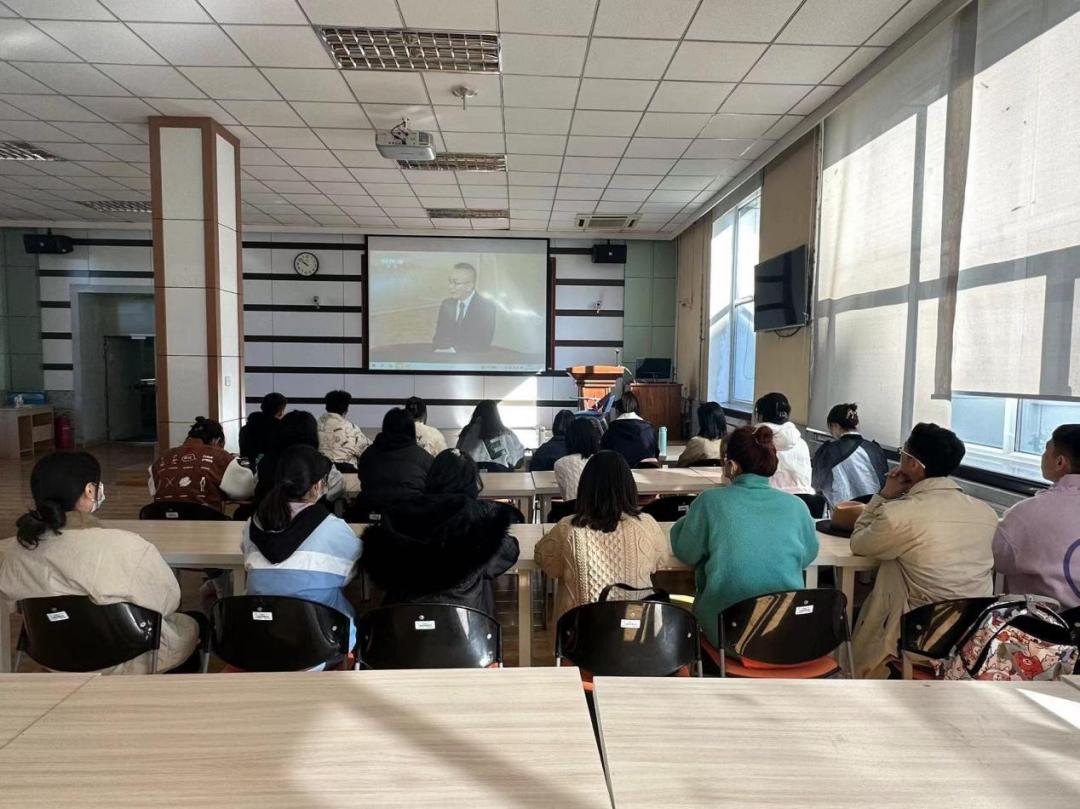 习近平总书记代表第十九届中央委员会向党的二十大作报告。大会主题以“高举中国特色社会主义伟大旗帜,全面贯彻新时代中国特色社会主义思想,弘扬伟大建党精神,自信自强,守正创新,踔厉奋发,勇毅前行,为全面建设社会主义现代化国家,全面推进中华民族伟大复兴而团结奋斗。”为主题,大会报告共分十五个部分,习近平总书记在报告中强调“中国共产党为什么能,中国特色社会主义为什么好,归根到底是马克思主义行,是中国化时代化的马克思主义行。”会上,全体师生代表聚精会神,边听边记,感受民族的复兴征程,大家情不自禁地发出阵阵感慨,会场掌声长鸣,深深赞同习近平总书记所强调的“新时代的伟大成就是党和人民一道拼出来、干出来、奋斗出来的!”等一系列汇报内容。