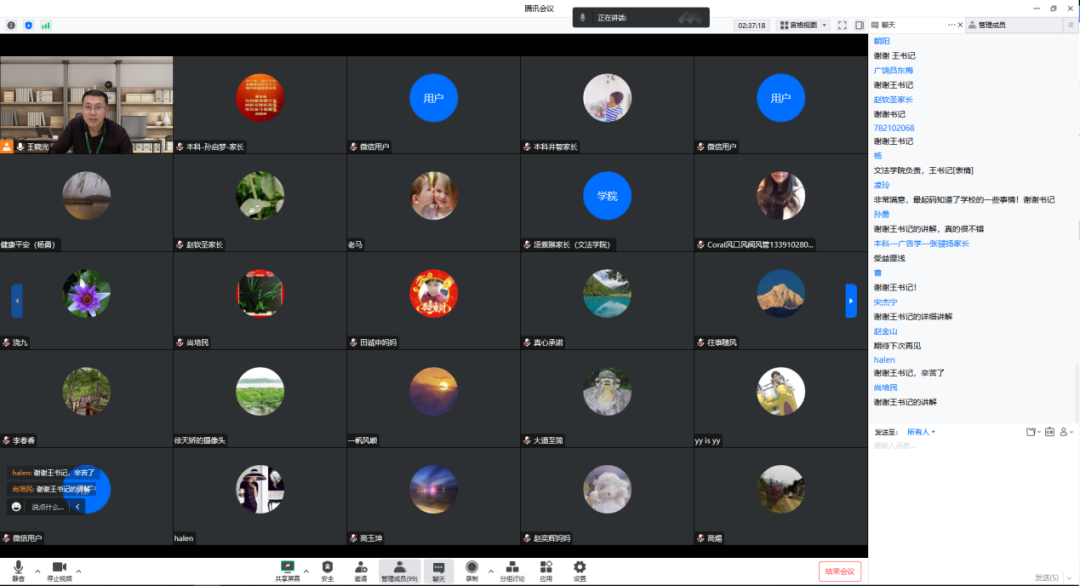 11月11日19时,伟德国际1946如期举行第4期家校互动开放日活动,活动由党委副书记兼副经理王晓光老师主持,160余名家长通过腾讯会议参加。