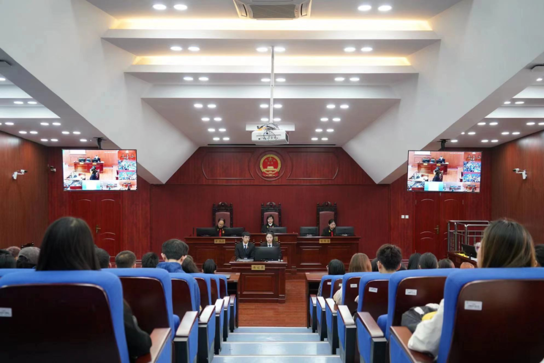 这是一场真实生动的庭审现场教学。庭审沿着宣布法庭纪律、法庭调查、举证质证、法庭辩论等程序依次展开,主审法官依法按照审判程序进行公开审判,原告和被告双方当事人、代理人围绕案件争议焦点进行了充分的陈述和辩论。庭审现场,同学们认真聆听,进一步加深了对知识产权法相关知识的理解。