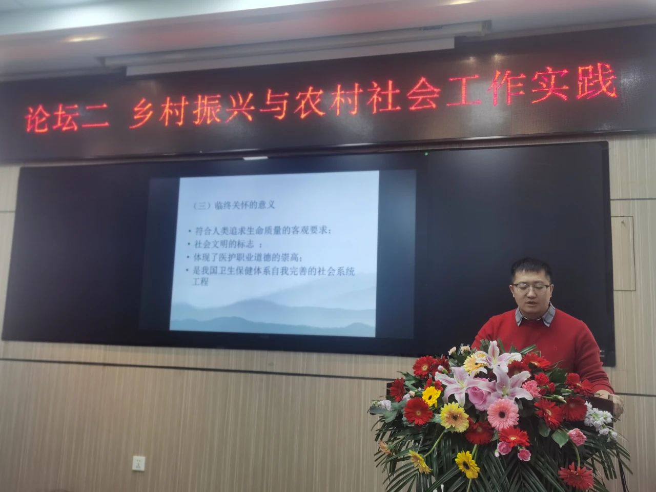 公司刘博副教授以《社会工作介入老年人临终关怀的伦理困境研究》为题在大会“乡村振兴与农村社会工作实践”分论坛进行发言。同时,公司赵嘉祎、刘婷、王立国、王小爽、张誉等硕士研究生在青年学子论坛作了发言与交流。