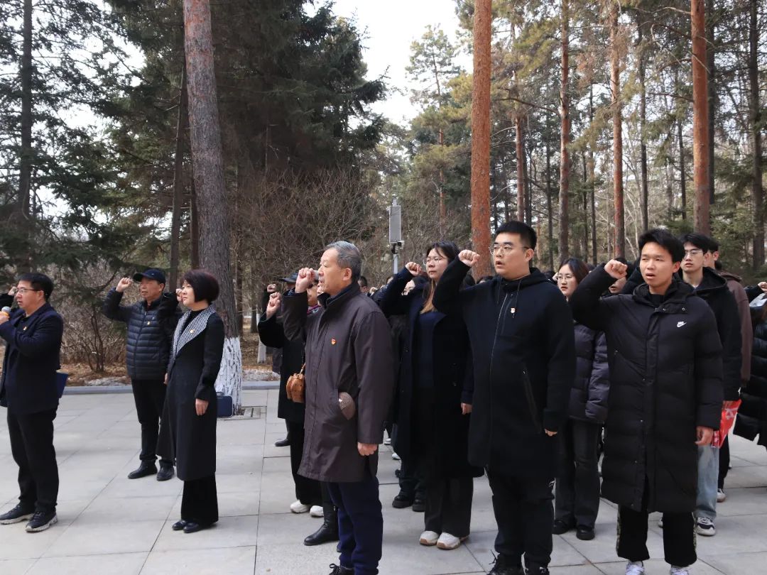最后,在烈士墓前,全体党员面向党旗,举起右拳,重温入党誓词。誓言铿锵有力,字字千钧。
