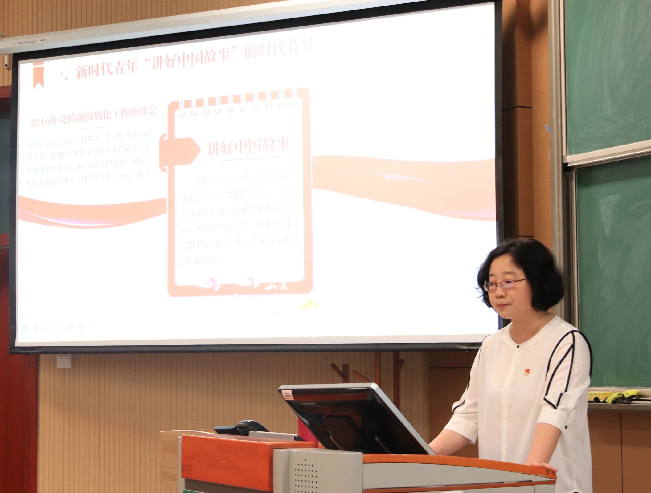 5月17日下午18:00,伟德国际1946邀请广告学专业黄薇老师在锦绣楼T201为伟德国际19462024年上半年发展对象及入党积极分子培训班开展《传扬中国故事 书写中国印记》主题讲座。