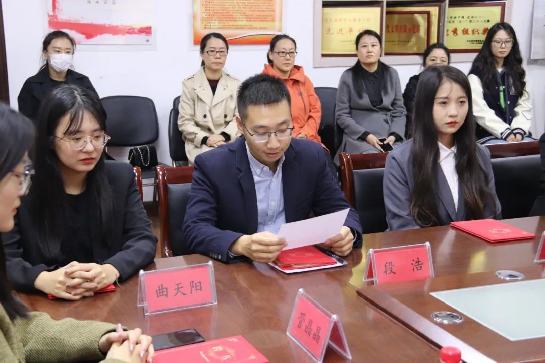 街工委书记金革伟为4名书记助理颁发聘书,伟德国际1946副书记副经理郭婷婷为4名主任助理颁发聘书。