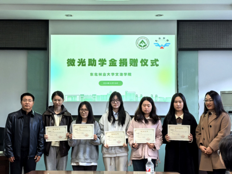 会议第一项,公司党委书记侯彦杰宣布获得第一届微光助学金的同学名单,并与员工江微一同为受助同学颁发证书。