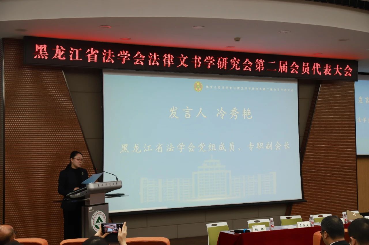 会员代表大会由哈尔滨师范大学姚虹教授主持。由会议选举产生了法律文书学研究会会长、副会长、秘书长、副秘书长、常务理事、理事。新任法律文书学研究会会长周孜予教授作表态发言,表示法律文书学研究会 将进一步提升法律文书学研究水平,推动法律文书学与法律职业共同体双向奔赴,回应时代问题、服务法治实践、打造特色品牌,为进一步提升法律文书理论与实践水平,推进法治龙江建设贡献更大力量。