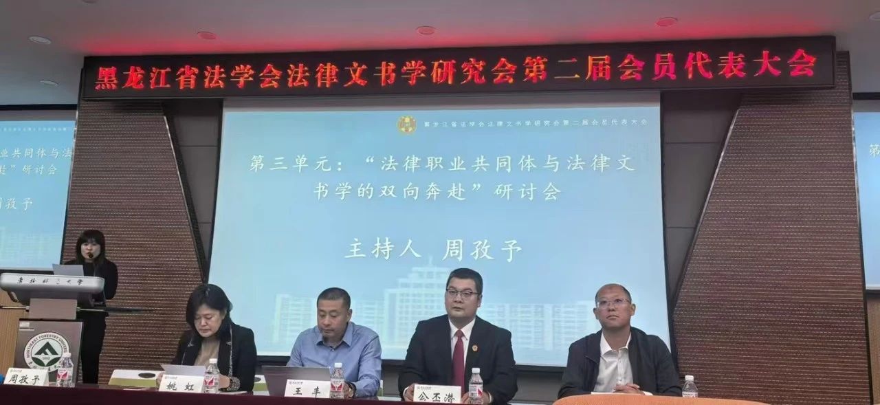 党的二十届三中全会提出,“法治是中国式现代化的重要保障,要推动国家治理和社会发展更好相适应”。“黑龙江省法学会法律文书学研究会第二届会员代表大会暨‘法律职业共同体与法律文书学的双向奔赴’研讨会”的顺利举办, 进一步推助了法律文书学理论与实践的创新发展,进一步促进了法律文书学与法律职业共同体的深度融合,进一步提升了法律文书学研究的质量和水平。法律文书学研究会将在新征程新起点,坚持以习近平新时代中国特色社会主义思想为指引,团结带领全体会员深化法律文书研究,服务法治实践,为东北全面振兴全方位振兴提供坚强保障和智力支持!