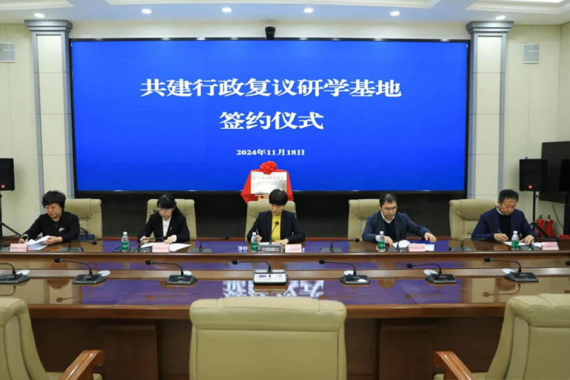 “行政复议研学基地”合作内容包括建立合作共建机制、实习实践机制、案例研讨机制、学术交流机制,开展师生复议实务实践、典型案例专题研讨、学术理论交流研究等活动,旨在将其打造成法律类专业师生实践教学与锻炼基地、行政复议工作人员理论提升基地。