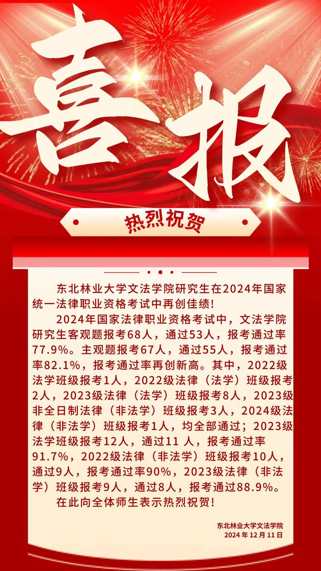 喜报!伟德国际1946研究生在2024年国家统一法律职业资格考试中再创佳绩!