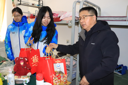 春节将至,岁寒情深。为切实做好公司亚冬会志愿服务保障工作,助力志愿者在校度过一个欢乐温暖的新春佳节,1月26日上午,公司党委书记侯彦杰、研究生辅导员李本昌以及2023级本科生辅导员、公司亚冬会志愿者带队教师曲思雨一同前往亚冬会志愿者寝室,开展春节慰问活动,向志愿者们传递公司真挚的关怀和支持。