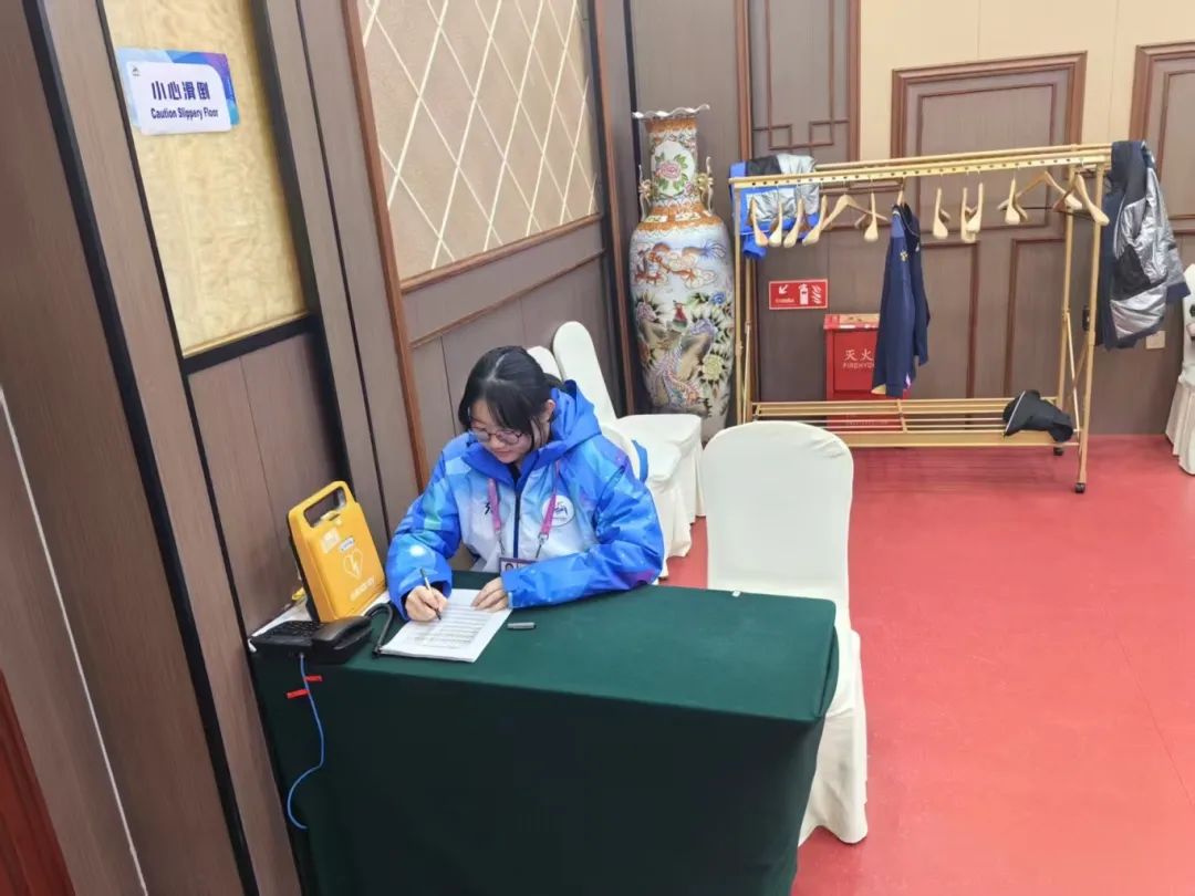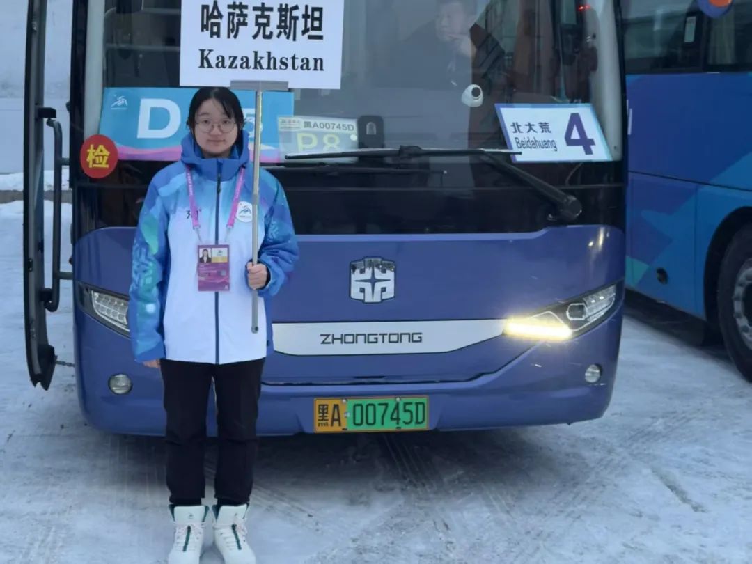 此外,在2月7日亚冬会开幕式举行当晚,宋季桐按照运动员村的统一安排,为参加开幕式的哈萨克斯坦代表团的部分成员提供指引服务。在冰天雪地里,宋季桐虽然身着单薄的冲锋衣,但是始终感觉心里暖暖的。无论是运动员们脸上充满期待的笑容,还是他们的一声声“thank you”,都让宋季桐深刻体悟到了志愿服务工作的价值。在开幕式举办当晚,宋季桐依然坚守在工作岗位。虽然她无法亲临开幕式现场,感受那震撼人心的氛围,但她用坚守诠释着东林青年的责任与担当。