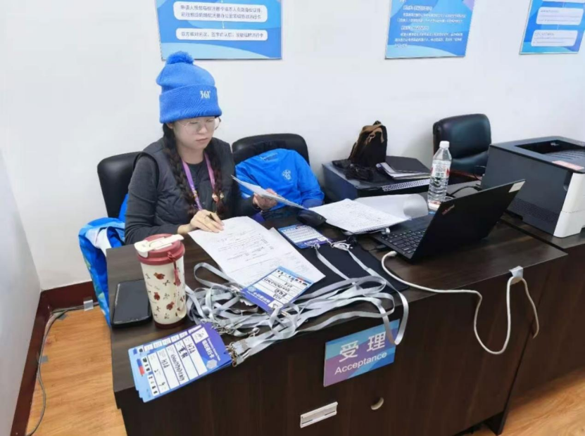 从报名亚冬会,到一面二面,再到最后正式成为一名亚冬会志愿者,这其中有紧张,有迷茫,但最后更多的是骄傲。作为冰球馆注册制证工作人员,我们的主要职责是为所有参与冰球赛事的运动员、官员、志愿者以及媒体人员制作临时通行卡并进行证件激活。看着每一个丢失了证件的人重新拿到自己的证件,情绪由急躁变为轻松,我们的内心真的非常高兴,能为大家解决问题。在制证过程中,我也感受到了团队合作的重要性,制证工作涉及多个环节,包括信息收集、审核、制证、发放等,每一个环节都需要不同岗位的工作人员紧密配合。注册办公室里经常充满忙忙碌碌的人,在工作的闲暇之余大家会一起看比赛,关注赛事,感受体育竞技精神。