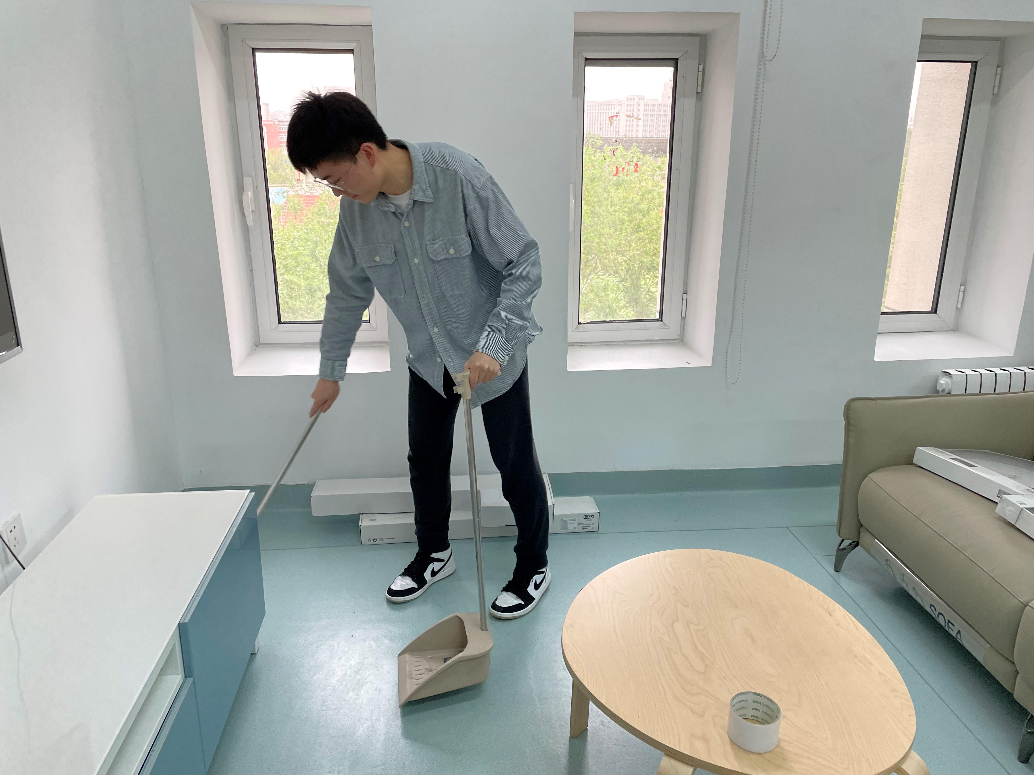 活动过程中,大家分工明确,相互配合,形成三个小组有序开展劳动,分别负责擦拭、清扫和整理,共同打扫健身区,休息区和置物区三个区域。同学们有序地进行卫生清扫,认真擦拭器材、桌子和柜子,并对活动室内的闲置物品进行了归纳整理,不放过每一个角落,为公司职工之家营造了良好、舒心的环境氛围,圆满地完成了本次活动。
