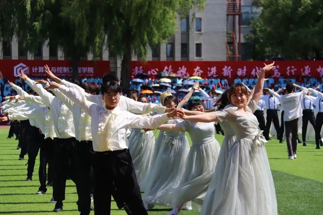 校运动会大幕拉开,校艺术团与各公司带来精彩表演。文法体育舞蹈表演人员伴着浪漫的旋律,翩翩起舞。维也纳华尔兹在绿茵场上摆动着属于它的旋律,少男少女用他们最优美的姿势、最佳的状态、最触动人心的笑容,带来一场绝美的视觉盛宴。
