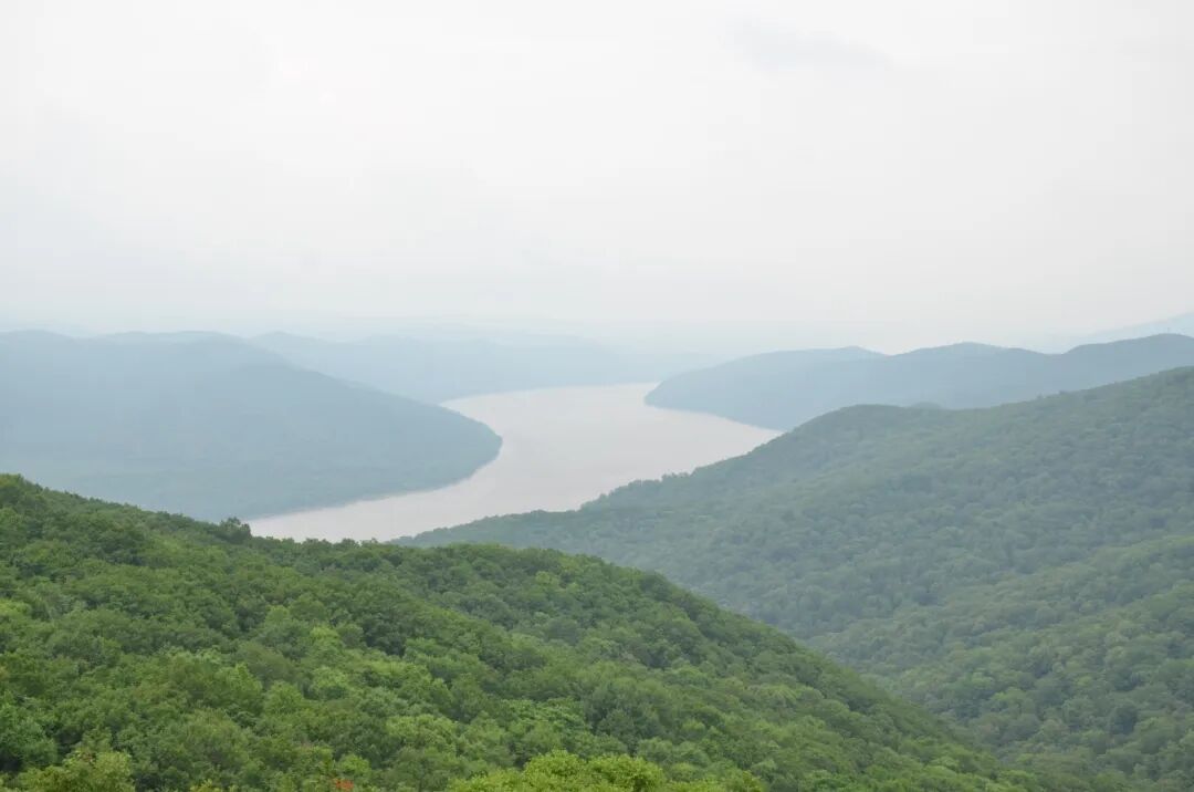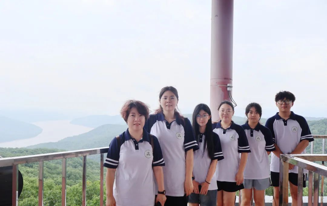 告别历史的深沉,我们登临名山风景区的最高点——“云天阁”。这座巍峨的仿古塔阁,宛如镶嵌在青山碧水间的明珠。攀至顶峰凭栏远眺,壮阔的黑龙江奔流东去,对岸俄罗斯的广袤森林清晰可见,一江之隔,两国风光尽收眼底。江风拂面,边陲的辽阔与开放感油然而生,大家临风抒怀,深刻感受着萝北作为“中俄界江之窗”的独特地理禀赋与开放包容的胸襟。在这片曾被先烈用生命守护的土地上,如今万物葱茏、山河安澜,正是“绿水青山就是金山银山”的生动写照。