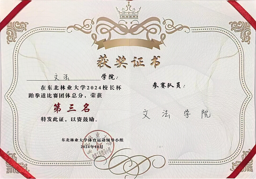 本次跆拳道赛事中,文法学子展现出不俗的体育素养与团队协作能力,发扬了追求卓越、顽强拼搏的体育精神。希望未来文法学子们能够继续积极进取、齐心协力,在今后的各类赛事中不断超越,再创辉煌!