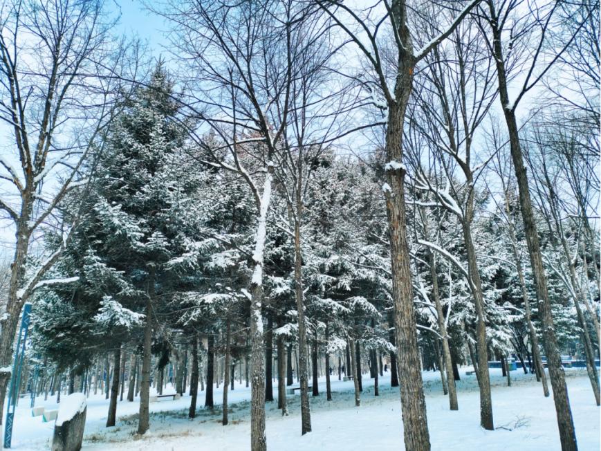 但,东北的雪更鲜活,拥有独属于中华北域的热烈洒脱。它用双手搓出月白、玉白与霜色而大块涂抹,使树树皆白,屋屋皆亮。