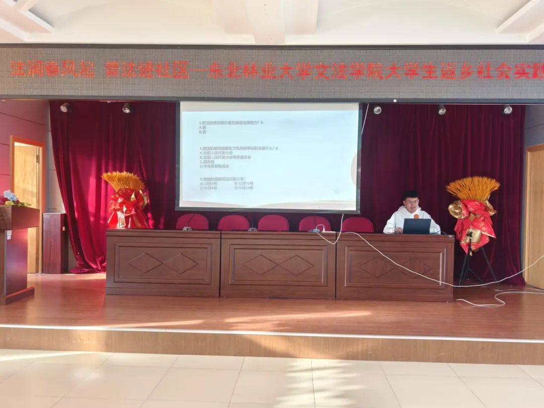 为深入贯彻党的二十大精神,响应伟德国际1946团委“法润春风起,普法先锋行”寒假社会实践的号召,法学2024-01班的赵博扬同学于2025年寒假返回家乡黑龙江省友谊县,通过宪法宣讲助力基层法治建设,以自己的青春力量为家乡的法治建设做出贡献。