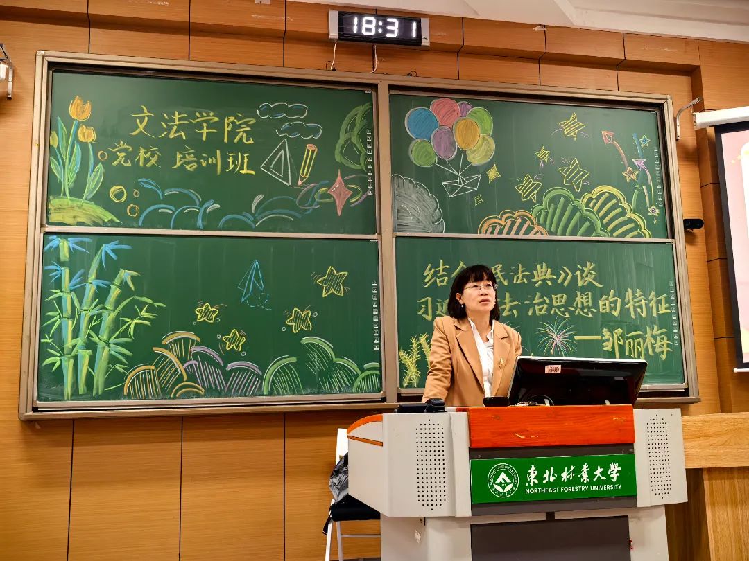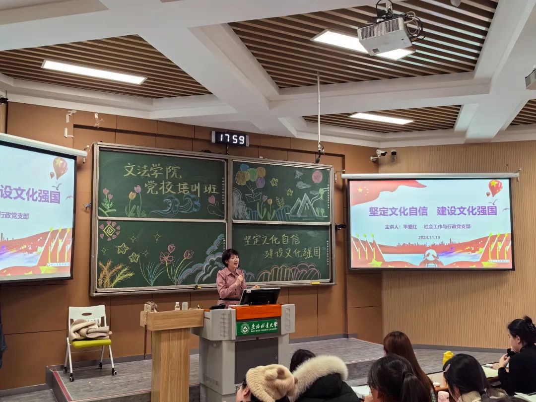 在之后党校课程中,公司副经理邹丽梅、公司党委副书记郭婷婷、社会工作与行政教师党支部书记平爱红分别就《结合〈民法典〉 谈习近平法治思想的特征》《青春向党 挺膺担当》和《坚定文化自信 建设文化强国》为主题开展讲座,让同学们学法知法用法,学好传统文化,爱国、励志、求真、力行,践行伟大建党精神,以青春之我,创青春之国家。